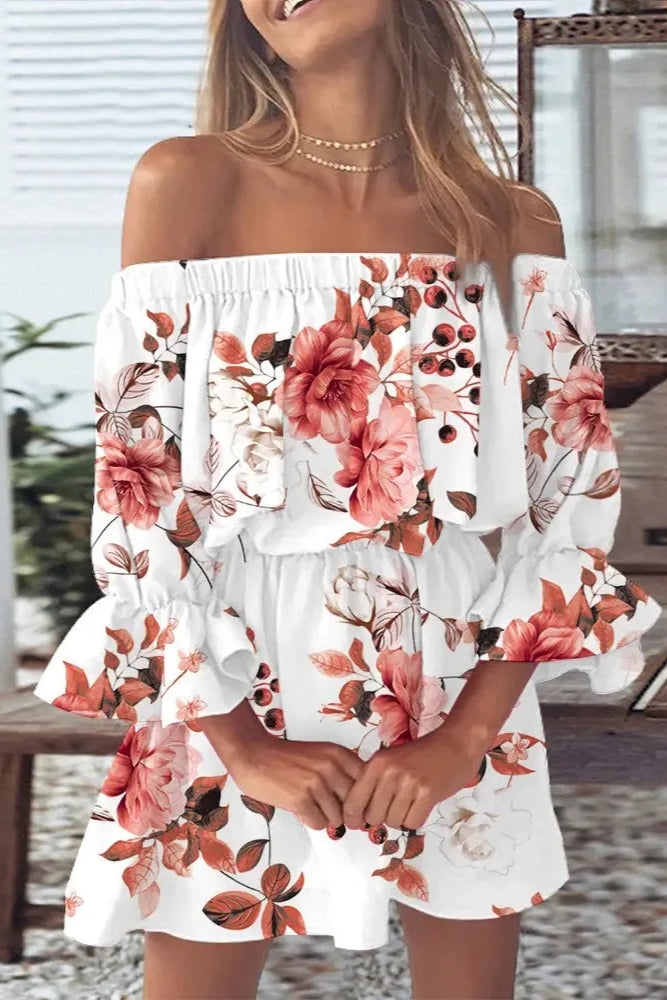 Women’s Summer Off Shoulder Floral Boho Backless Top